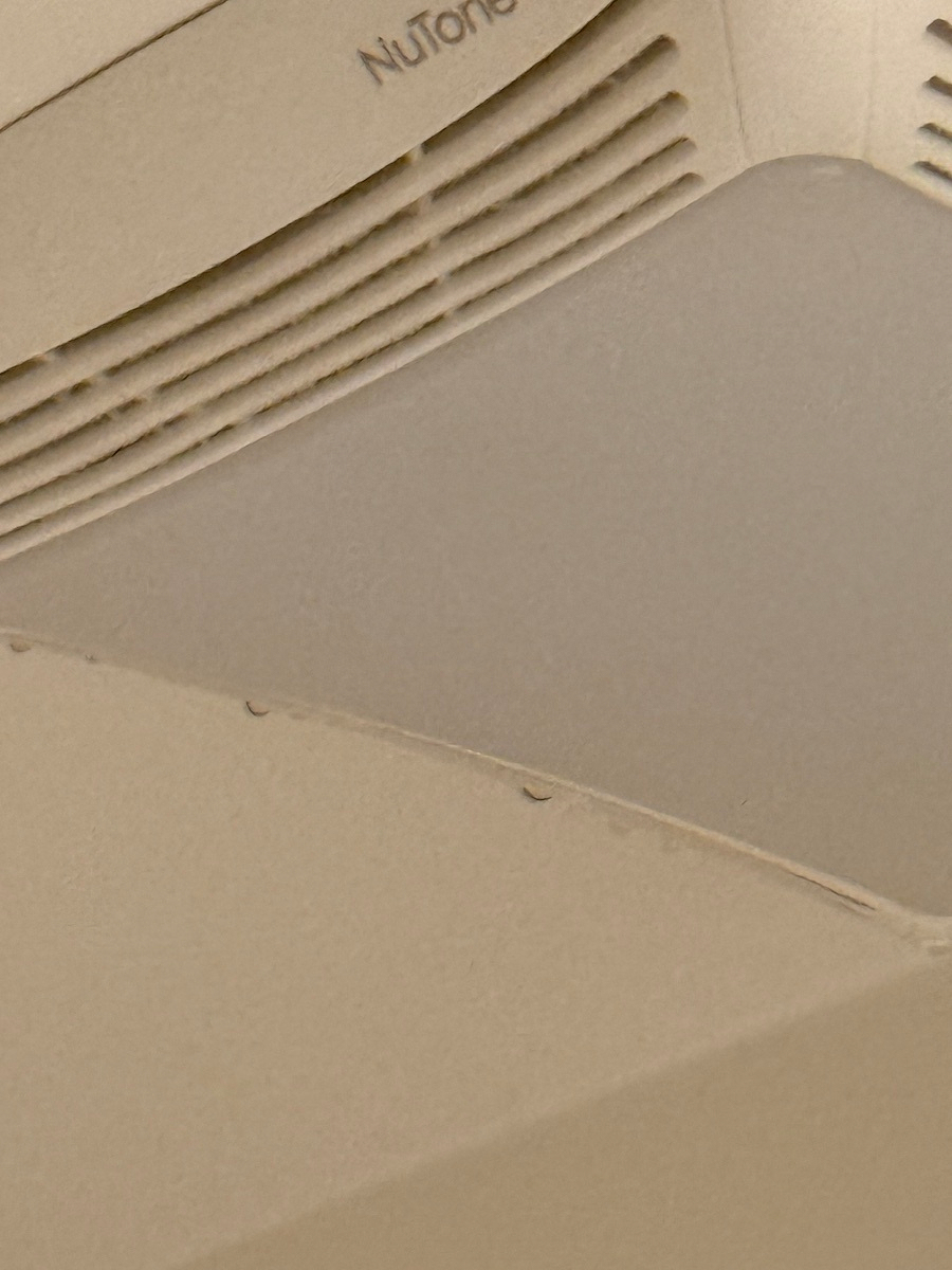 We’re right in the middle of a flood happening right now in our guest bathroom. Water is literally cascading through the fan on the ceiling onto the toilet and floor below, pooling.